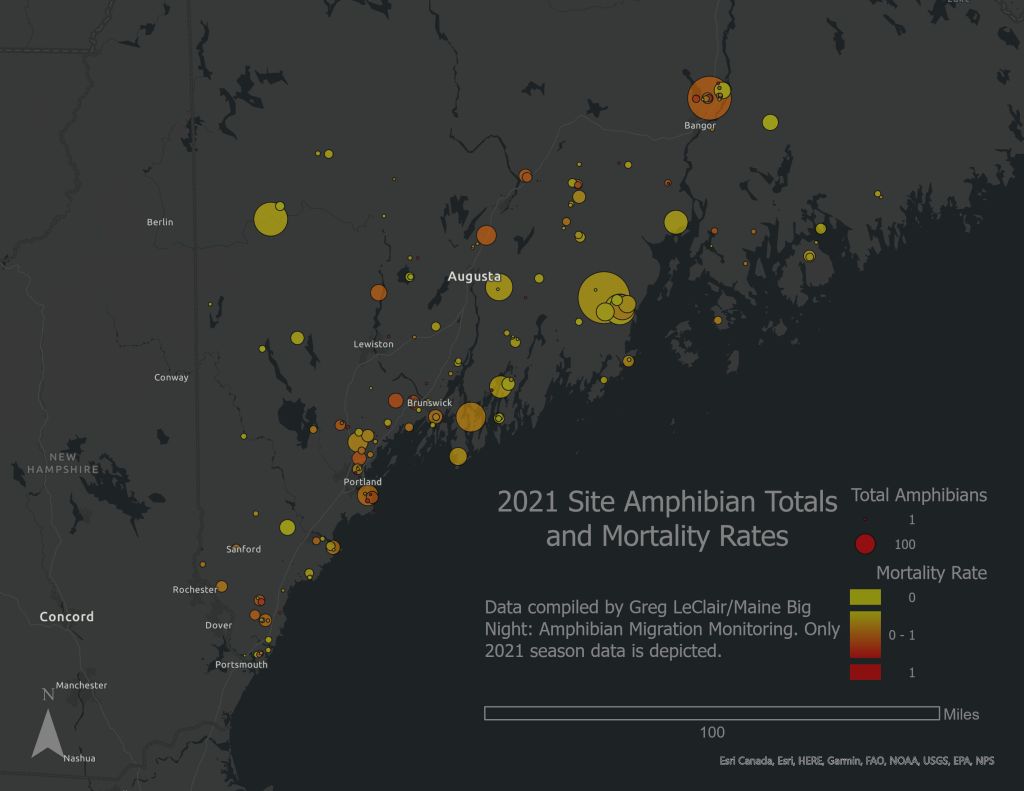 MBN is focused on conserving populations of road-crossing amphibians in Maine. Whether this is by directly assisting them across the road or using our data to inform future infrastructure projects, we are committed to the long-term persistence of amphibians in our state. Please explore our projects here!